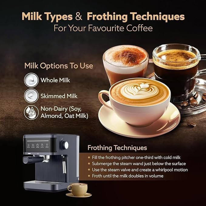 Coffee Maker Machine for Home & Office | Espresso Coffee Machine with Milk Frother Steam Wand, Touch Controls & Temperature Control | Coffee Maker for Cappuccino, Latte,