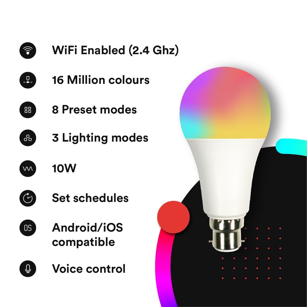 Bring your home to life with this smart LED bulb. Whether you’re relaxing, partying, or working, this bulb adapts to your mood with its multi-color lighting system.